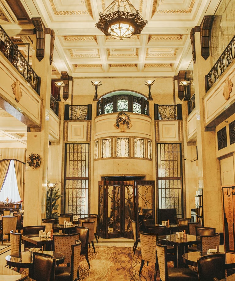 Historic grandeur marked by echoes of its past.
